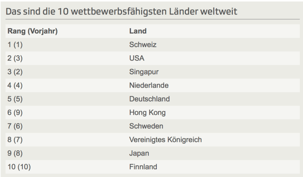 4. Die Schweiz ist das wettbewerbsfähigste Land der Welt