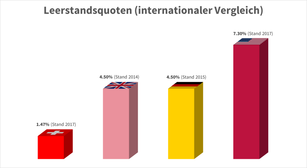 1. Leerstand: Keine Rekordwerte. Erst recht nicht im internationalen Vergleich.