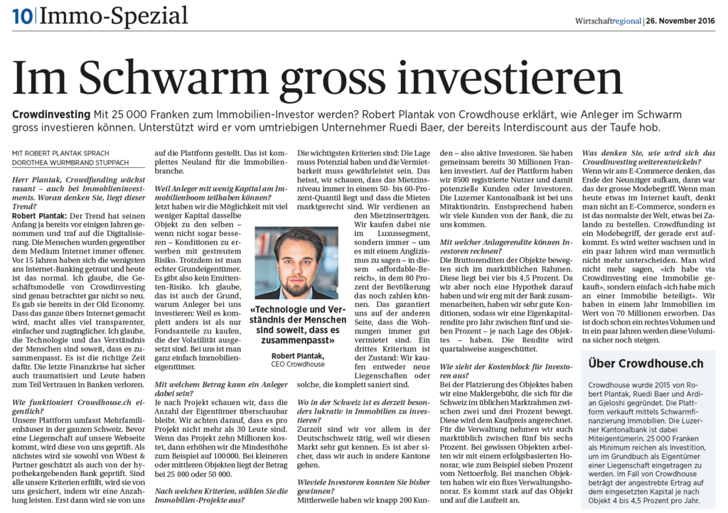 Erschienen in Aus der PresseIm Schwarm gross investierenRobert Plantak am 25. Nov. 2016 Weitere Neuigkeiten Alle crowdhouse-Immobilien auf einer Karte: Entdecken Sie unsere aktuellen Investitionsobjekte und erfahren Sie mehr über unsere bereits finanzierten Liegenschaften. Featured Erschienen in Investment-TippsInteraktive Karte mit allen crowdhouse-Immobilien Sehen Sie sich unsrere neuen TV-Spots an. Featured Erschienen in Company NewsUnsere neuen TV-Spots