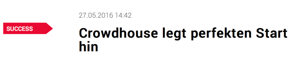 Wir freuen uns Ihnen den heutigen "Success-Artikel" über crowdhouse.ch auf www.startupticker.ch zu präsentieren.